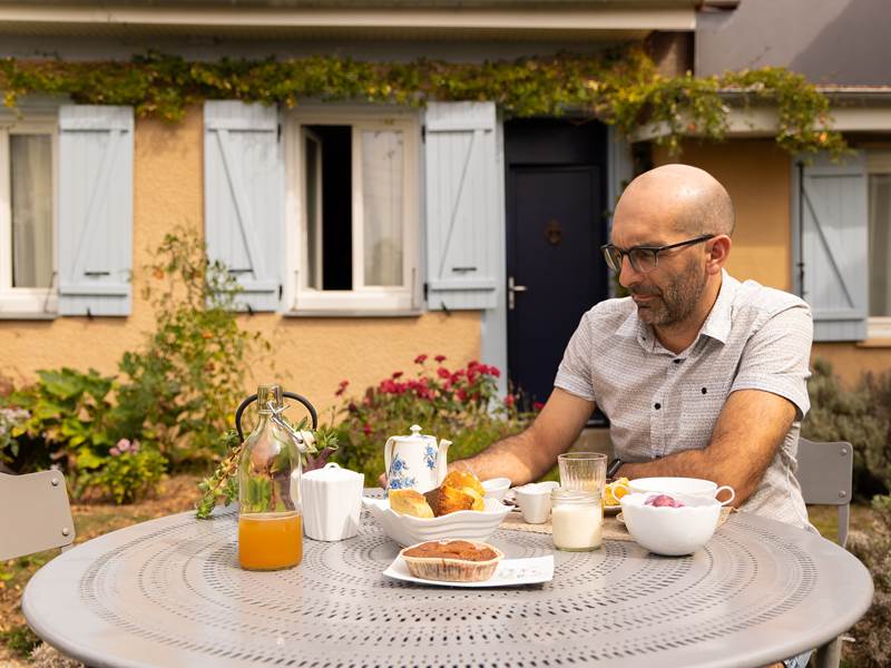 Chaque matin, laissez-vous tenter par un petit déjeuner gourmand fait maison : yaourts crémeux, pain aux graines croustillant, confitures et biscuits variés. Si vous préférez le salé, des assiettes dédiées vous attendent également. Le tout accompagné d'une sélection de thés, cafés, chocolats ou tisanes.